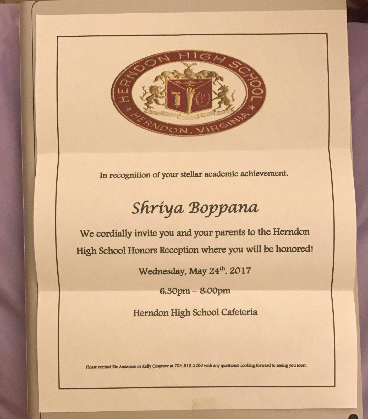 Herndon High School Class of 2017 Top Honor Student