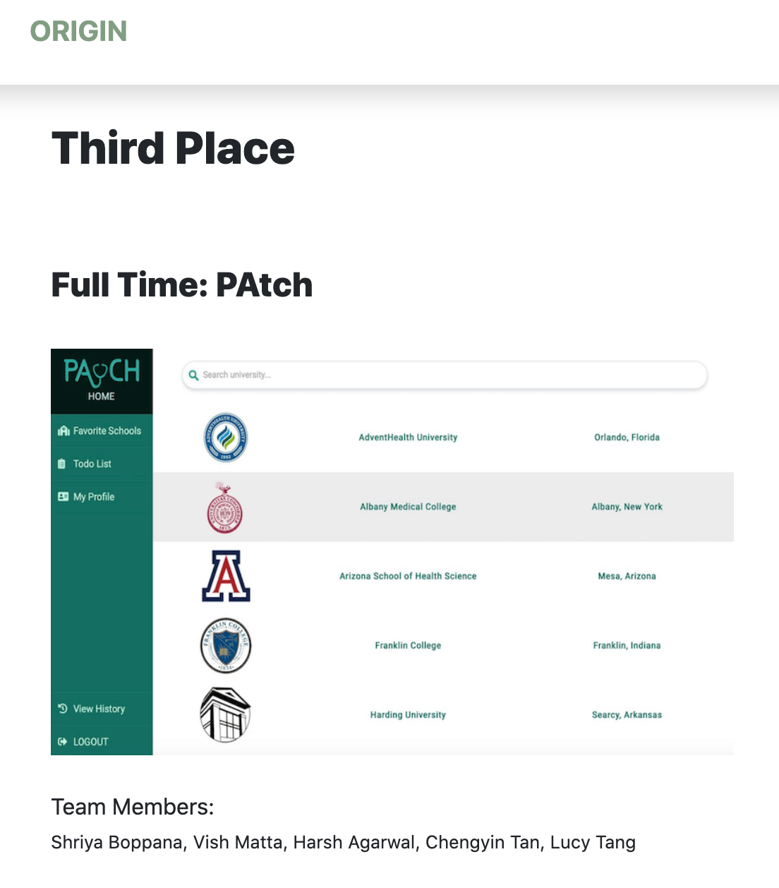 3rd Place Cornell University ORIGIN Bootcamp